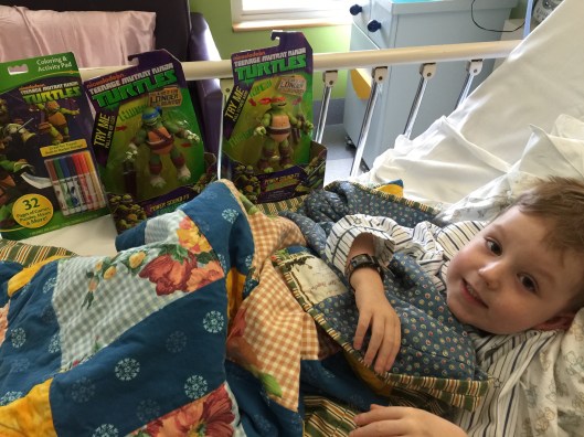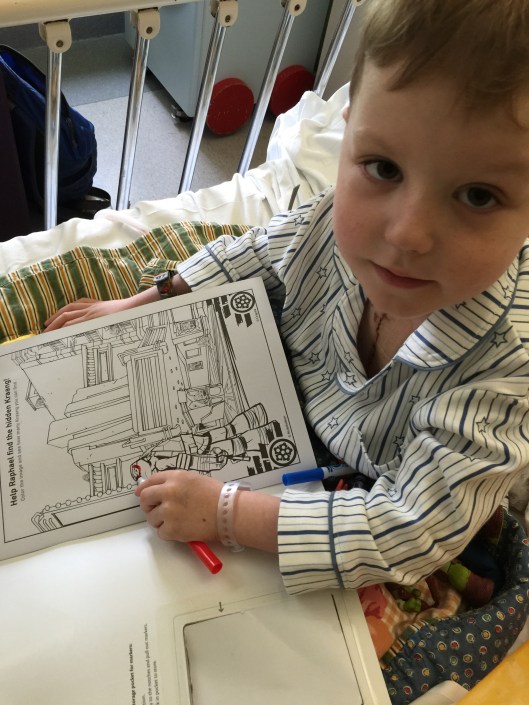 After a very difficult night we managed to make a little bit of progress on Ted’s anxiety about dressing changes. His play therapist worked so hard to prepare him.
